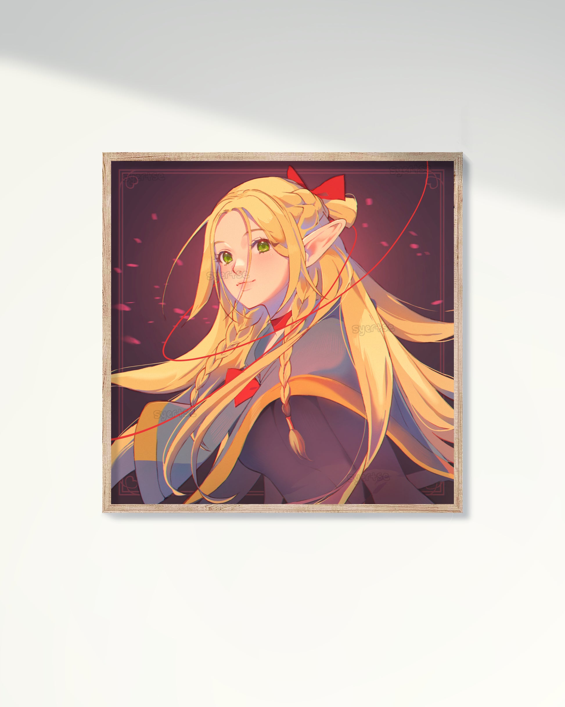 A print of Marcille, the half-elf mage that travels down dungeons while eating mysterious meals.